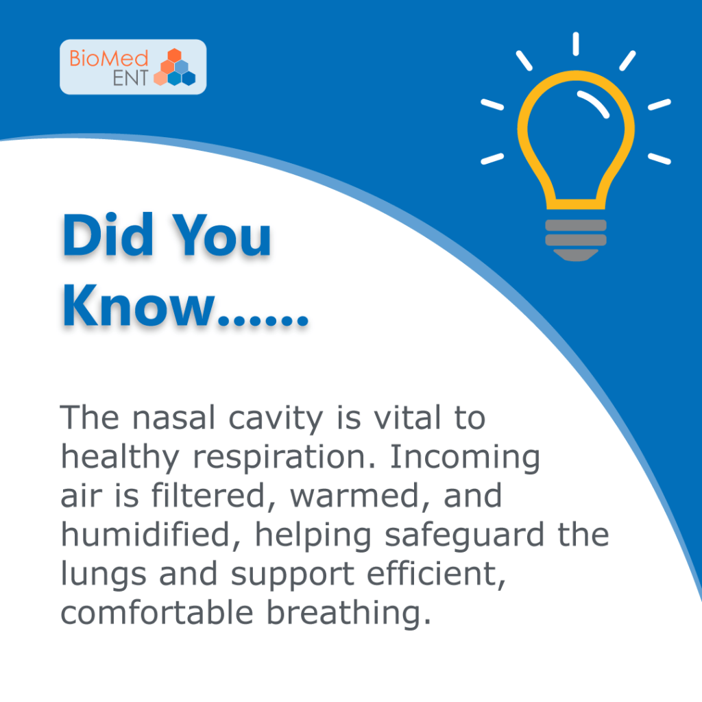 The nasal cavity plays an essential role in respiratory health. As air passes through, it is filtered, warmed, and humidified before reaching the lungs. These processes help protect the respiratory system from irritants, temperature extremes, and dryness. Maintaining nasal health supports overall breathing comfort and efficiency.